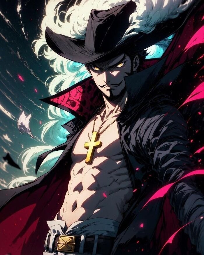 Ảnh Mihawk ngầu khắc họa ánh mắt diều hâu sắc bén, phong thái quý tộc cùng sức mạnh vượt trội, biến ông thành biểu tượng kiếm sĩ đỉnh cao trong One Piece.