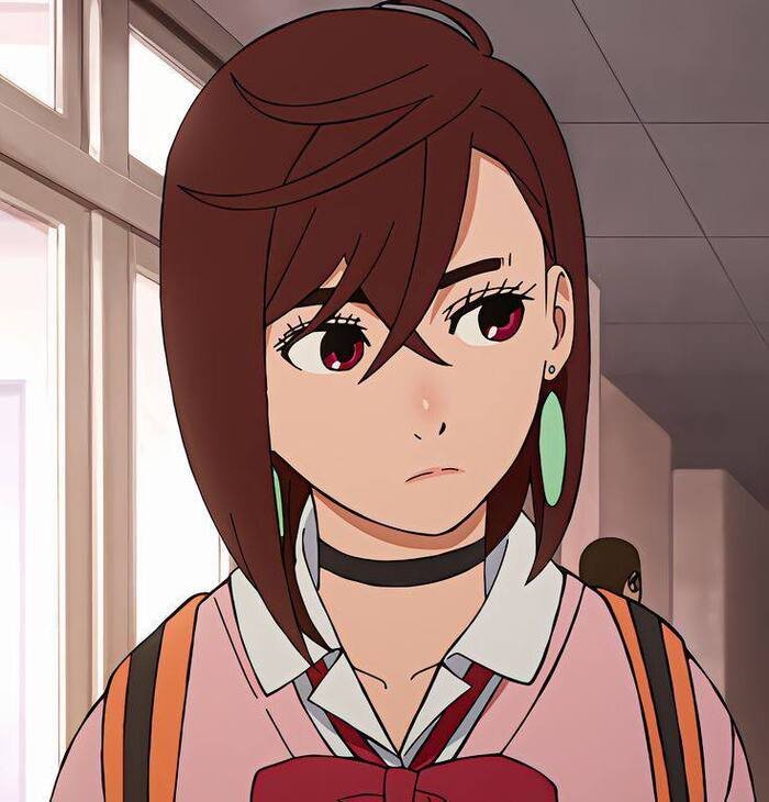 Ảnh Momo Ayase cá tính nổi bật với phong cách kogal trẻ trung, ánh mắt quyết đoán và vẻ đẹp cuốn hút, mang đến sức hút đặc biệt trong Dandadan.