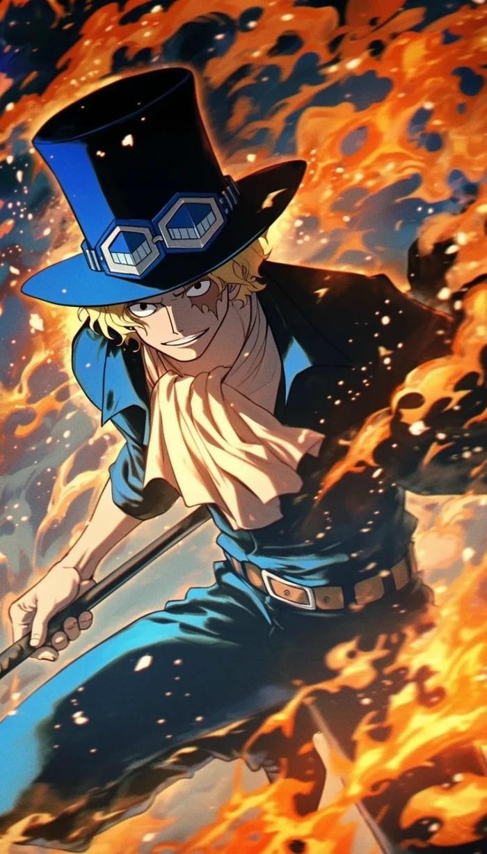 Ảnh Sabo nổi bật trong One Piece ghi dấu hình ảnh cách mạng quân đội với sức mạnh Mera Mera no Mi rực lửa. Thần thái tự tin, ý chí kiên định và tình anh em bất diệt khiến Sabo trở thành biểu tượng đầy cảm hứng trong lòng fan hâm mộ.