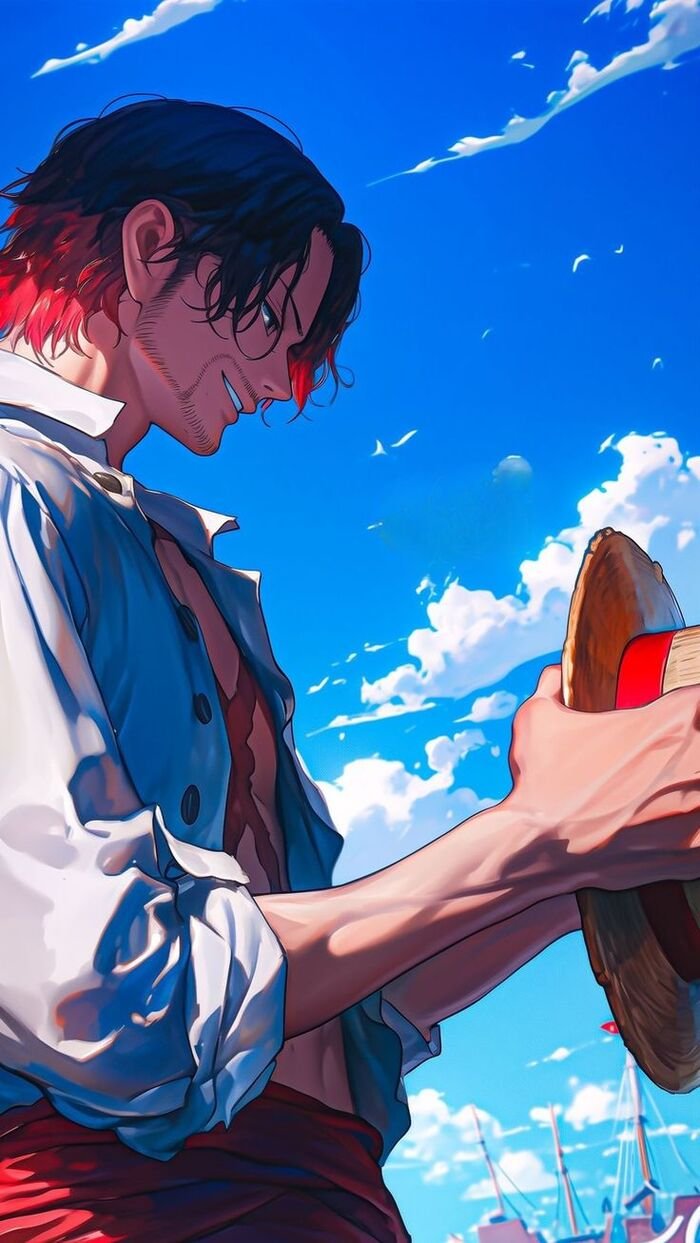 Ảnh Shanks ngầu đẹp thể hiện thần thái điềm tĩnh, ánh mắt tự tin và phong cách đỉnh cao của một Tứ Hoàng. Từng khoảnh khắc đều toát lên sự uy nghiêm và sức hút mạnh mẽ, khẳng định vị thế của Shanks trong One Piece.
